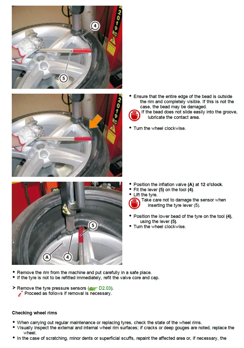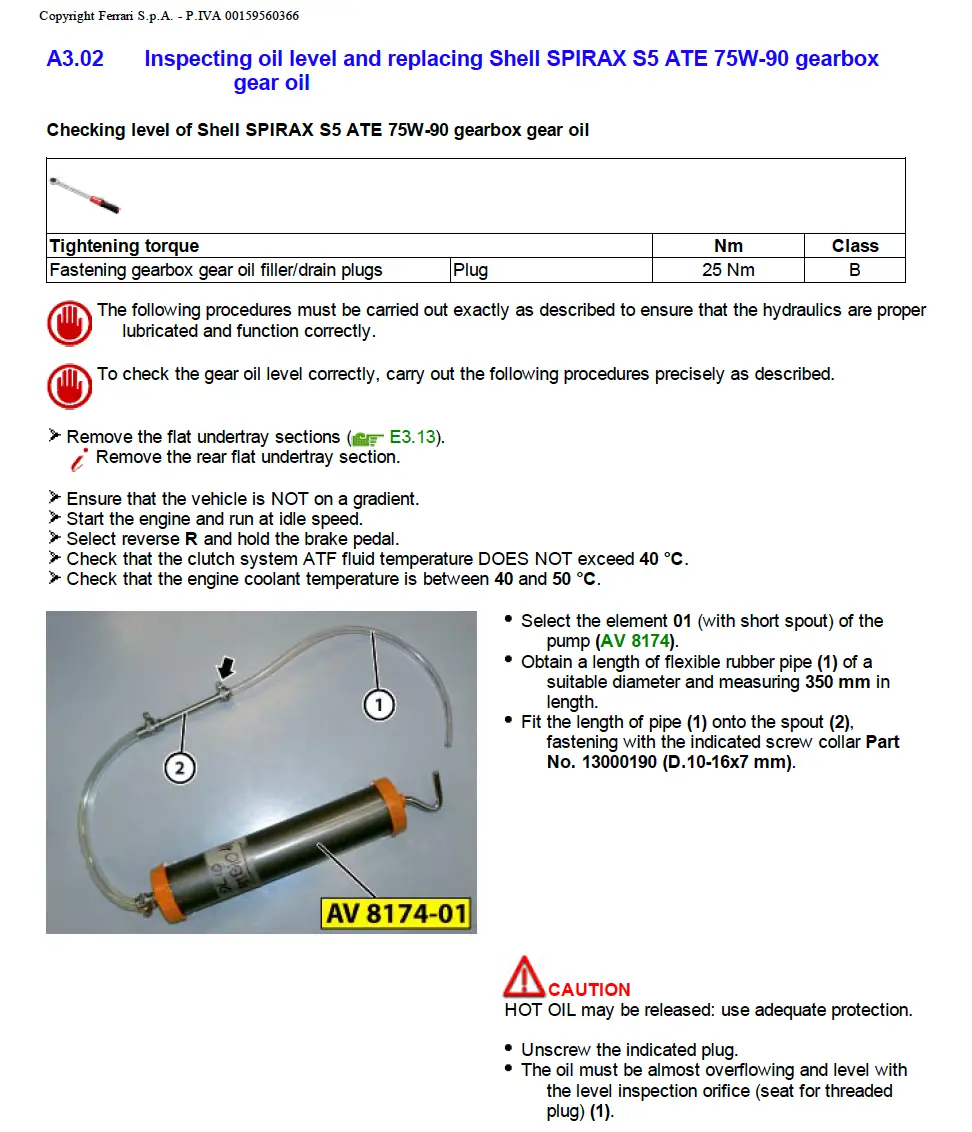 - Torque settings, Lubricant and liquid guides and Tool requirements for each job