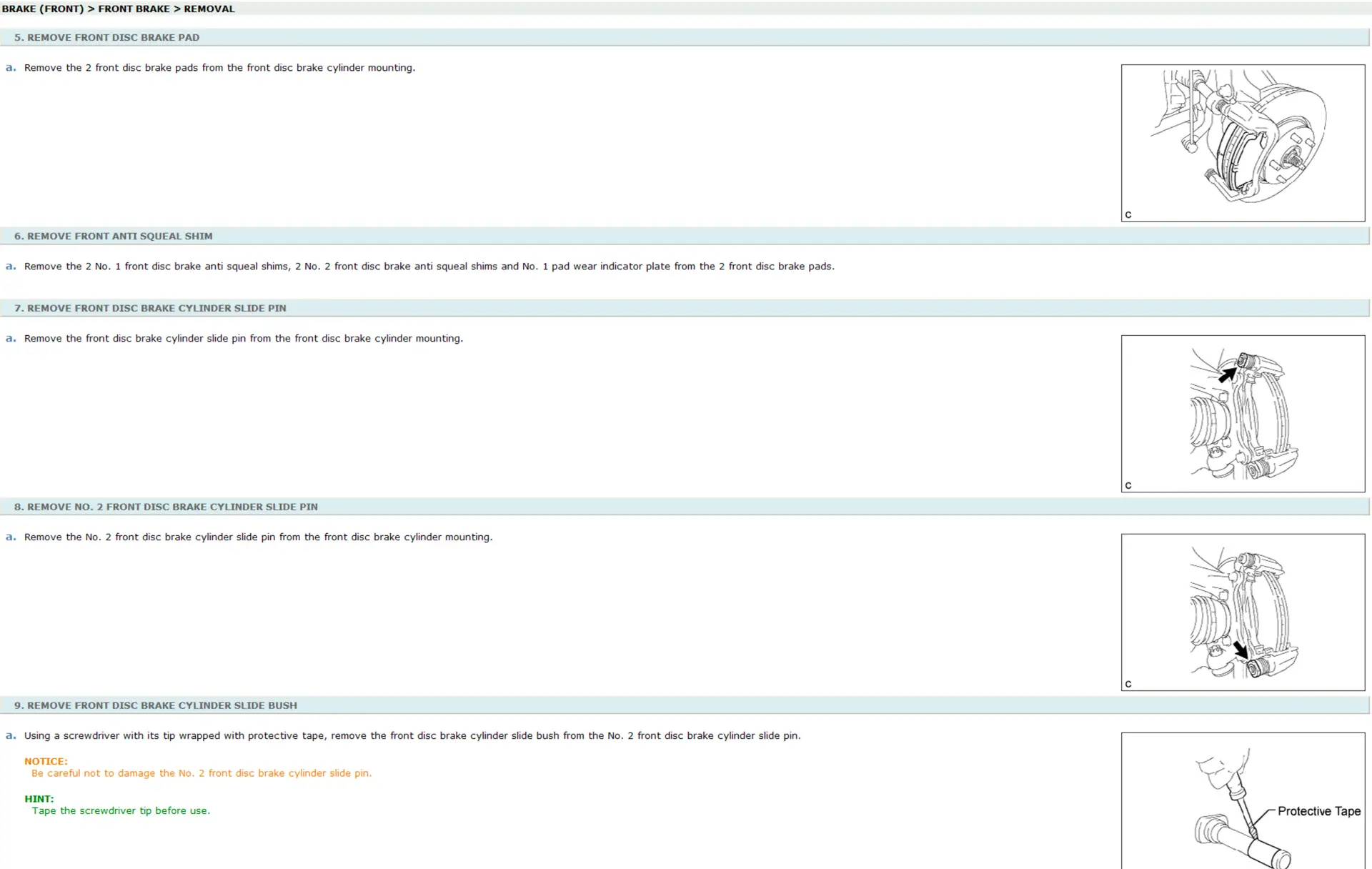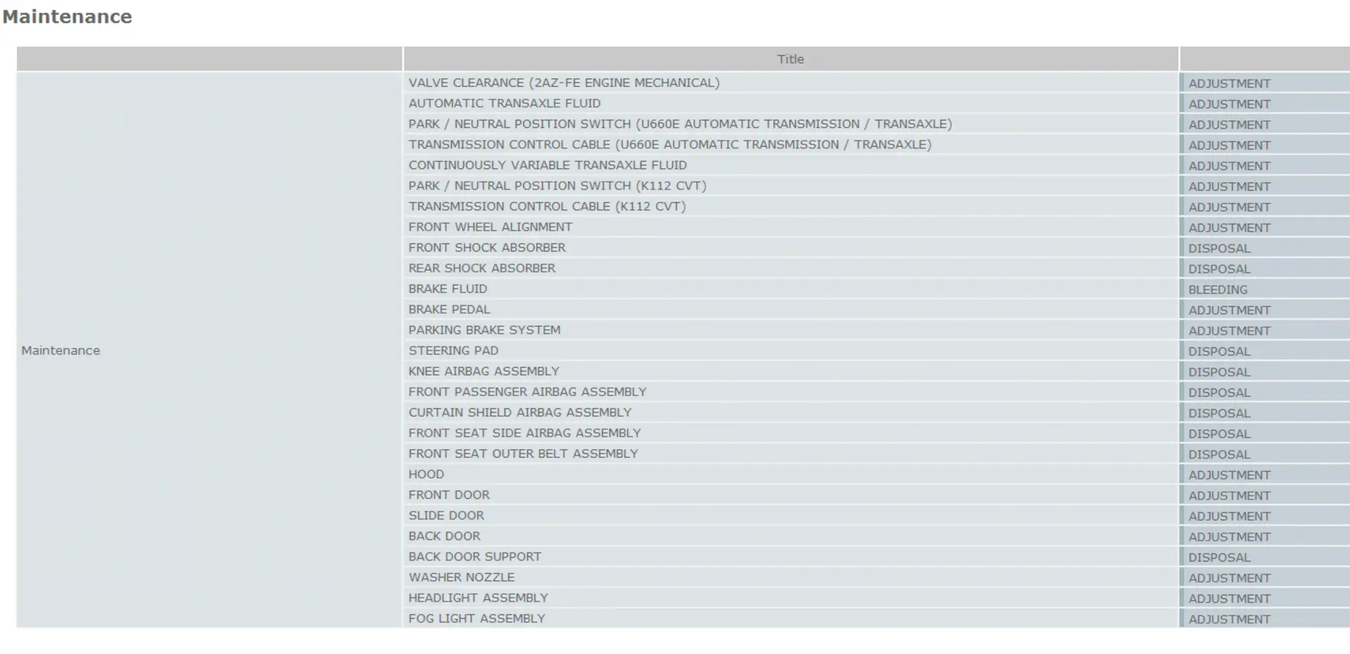 - Torque settings, Lubricant and liquid guides and Tool requirements for each job